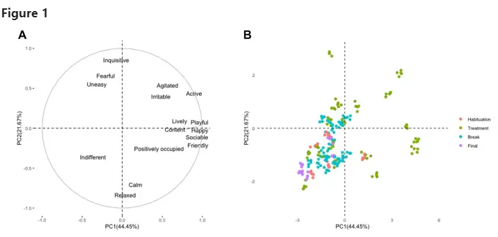 Existe falta de claridad sobre si los cerdos pueden responder emocionalmente a la estimulación musical y si esa respuesta está relacionada con la estructura de la música. Se utilizó la Evaluación Conductual Cualitativa (QBA) para evaluar los efectos de 16 piezas musicales distintas (en términos de estructura armónica) en las respuestas emocionales de cerdos en fase de cría (n=30) durante cuatro períodos: “habitualación”, “tratamientos”, “pausas” y “final”. Los datos fueron evaluados utilizando análisis de componentes principales (PCA). Se consideraron dos componentes principales (PC) en el análisis: PC1, caracterizado como un índice de emociones positivas, incluyó las respuestas emocionales de contento, juguetón, sociable y feliz, mientras que PC2, caracterizado como un índice de emociones negativas, incluyó miedo, curioso e inquieto con cargas positivas, y relajado y tranquilo con cargas negativas. La estimulación musical (tratamiento) aumentó (P<0.01) ambos índices emocionales, en comparación con otros períodos y esta respuesta fue influenciada por las características armónicas de la música. Concluimos que los cerdos tienen una amplia variedad de respuestas emocionales, con diferentes estados afectivos relacionados con la estructura musical utilizada, proporcionando evidencia de su potencial uso como enriquecimiento ambiental para esta especie.